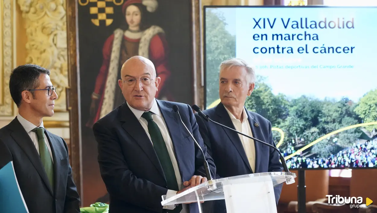 La presentación oficial ha tenido lugar en el Ayuntamiento, con la participación, entre otros, del alcalde Jesús Julio Carnero, el presidente provincial de la AECC, Artemio Domínguez, el investigador Dr. José Manuel Muñoz Félix, el director comercial de Iberdrola en Castilla y León, Celiano García, y el copresidente del Real Valladolid, Gabriel Solares.