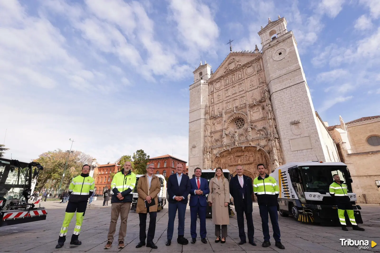 Jesús Julio Carnero, alcalde de Valladolid, de la mano del consejero de Presidencia de la Junta de Castilla y León, Luis Miguel González, han presentado este 24 de octubre los cuatro nuevos vehículos que se incorporarán al Servicio Municipal de Limpieza, valorados en 895.400 euros y financiados por el Gobierno Regional.