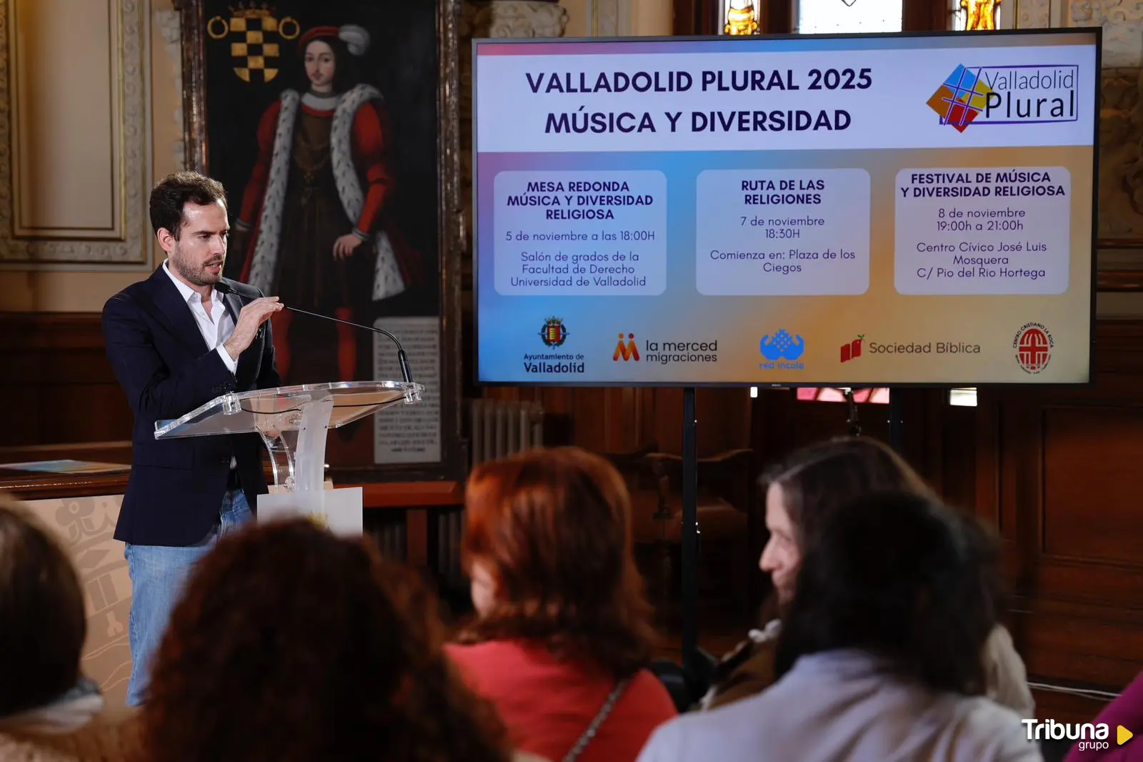 El Concejal de Personas Mayores, Familia y Servicios Sociales, Rodrigo Nieto, ha presentado este 4 de noviembre la nueva edición de 'Valladolid Plural', iniciativa con la que el Ayuntamiento busca "una inclusión y convivencia real" con la diversidad religiosa. El programa está compuesto por una mesa redonda, una ruta por la ciudad y un festival de música religiosa, que tendrán lugar los días 5, 7 y 8 de noviembre.