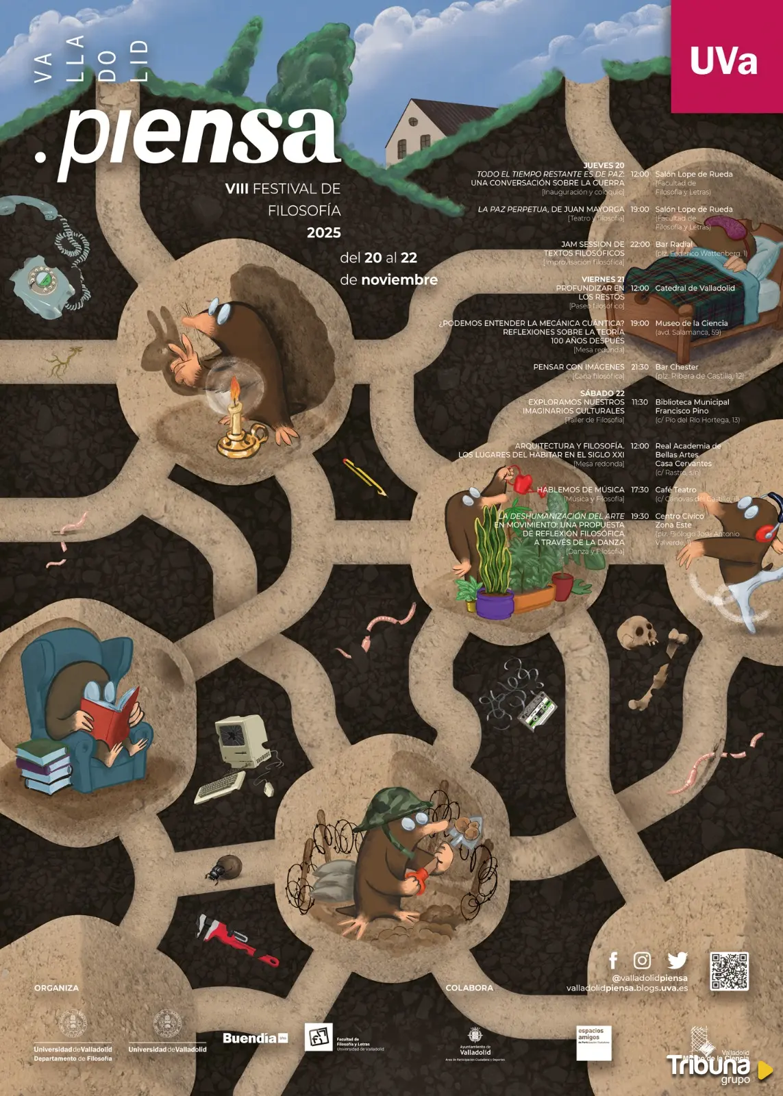 Con motivo del Día Mundial de la Filosofía, la Universidad de Valladolid celebra una nueva edición de 'Valladolid Piensa', el Festival de Filosofía que invita a sacar el pensamiento de las aulas y llevarlo a las calles, cafeterías, museos y otros espacios de la ciudad.