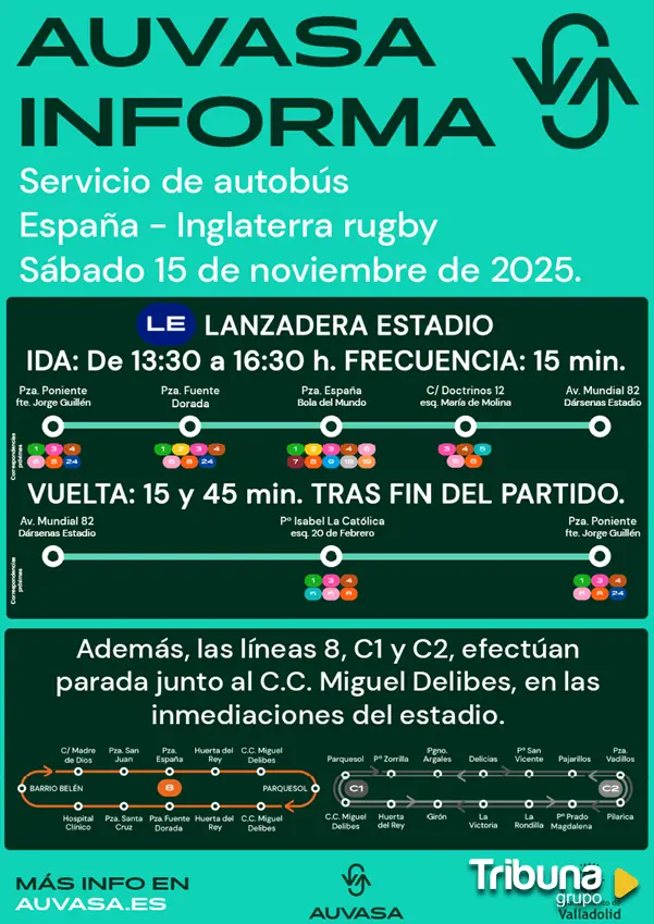 Del mismo modo, las líneas 8 y Circular permitirán a los aficionados acercarse al espacio con paradas junto al Centro Cultural Miguel Delibes.