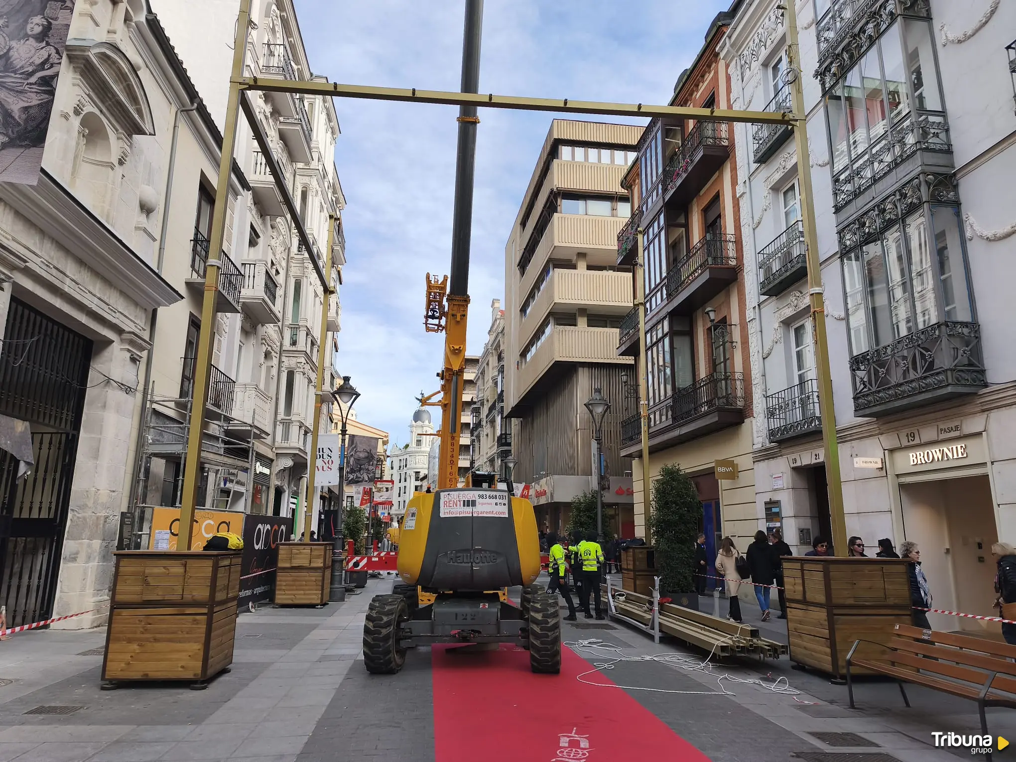 Los trabajos de instalación para las estructuras luminosas, que en años anteriores han sorprendido a los vallisoletanos con figuras en forma de regalo o bóvedas, están en proceso desde la mañana del 12 noviembre.