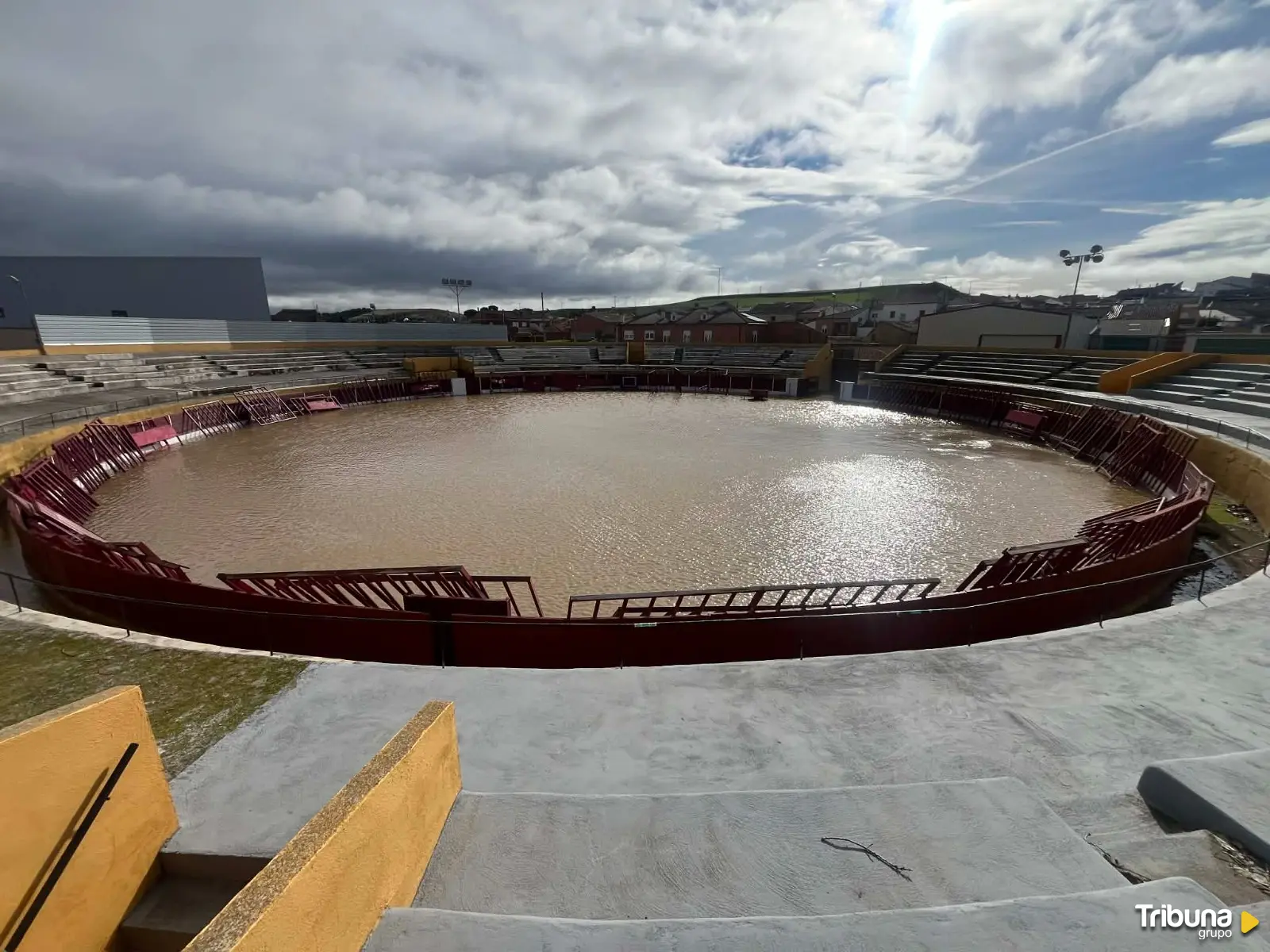 La fotografía es clara y diáfana del estado en que se encuentra el coso taurino. Una plaza cuyas maderas fueron pintadas por Javi, el anterior alcalde, y que ahora se dilatan con la humedad del agua hasta extremos exageramente negativos.