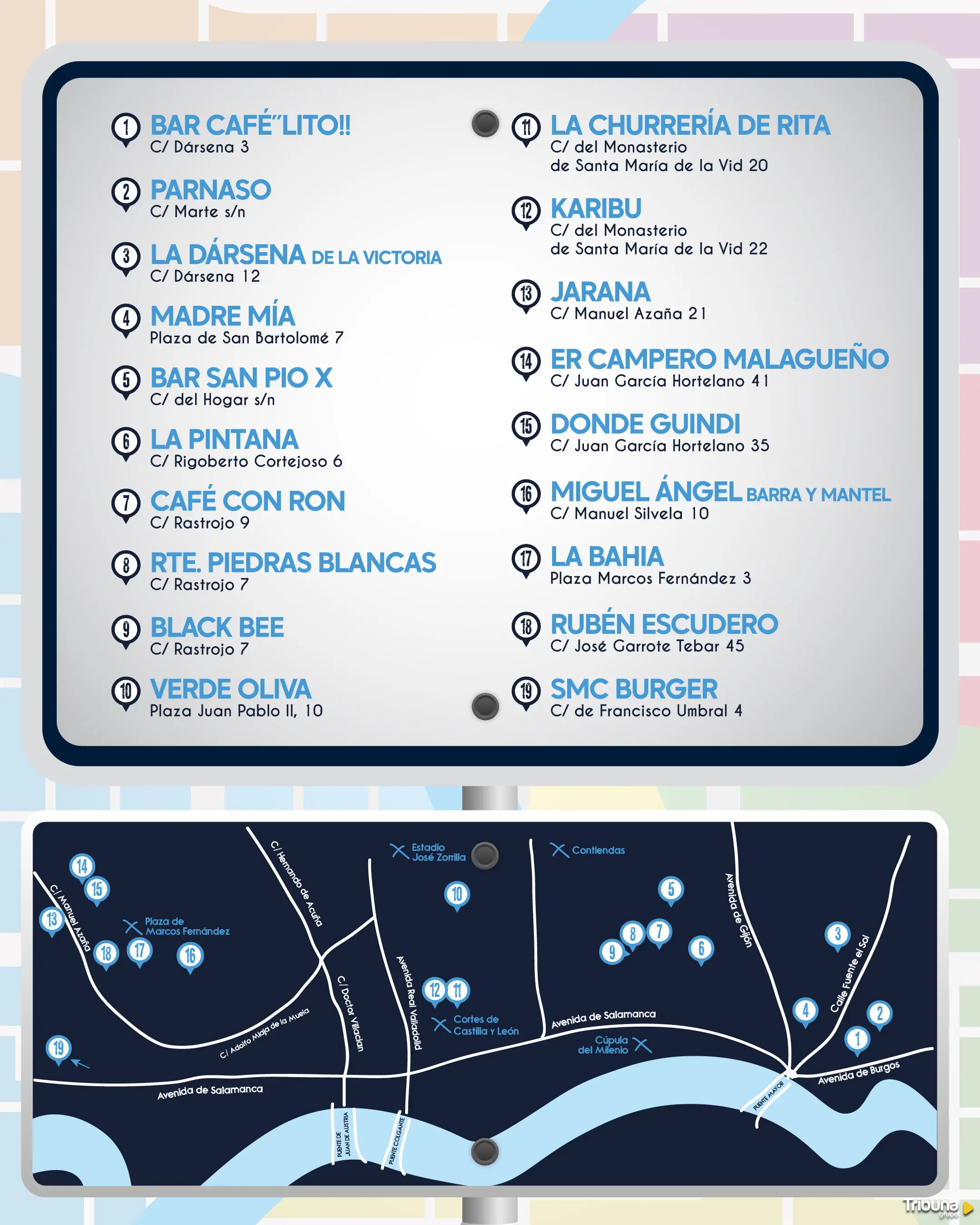 En esta primera edición participarán 19 locales repartidos por los barrios de La Victoria, Girón, Huerta del Rey, Villa del Prado, Parquesol y Las Rasposas, ofreciendo a vecinos y visitantes una amplia variedad de tapas y elaboraciones originales.