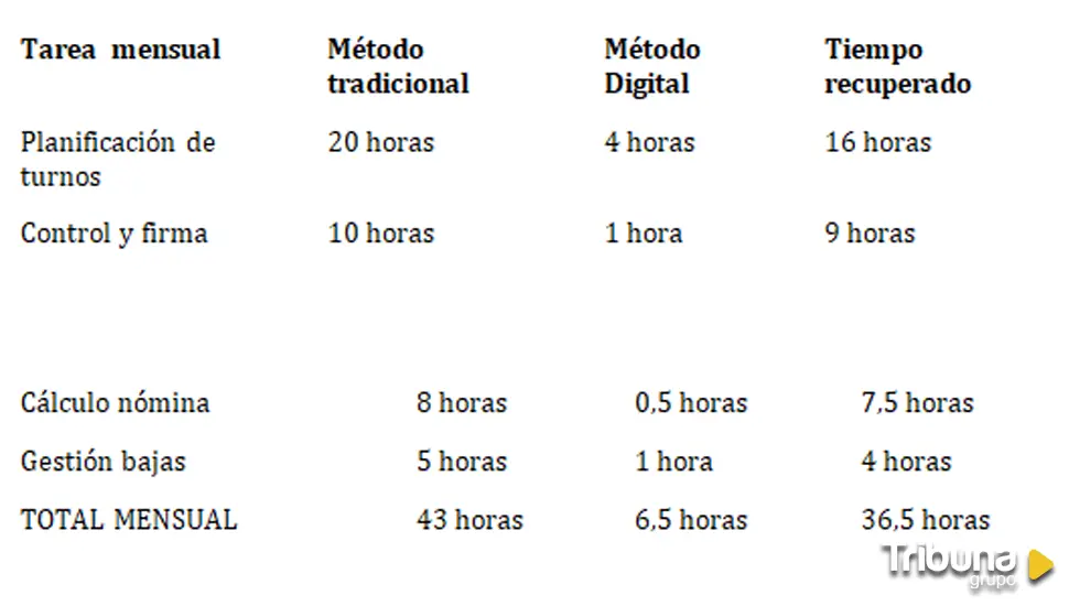 A continuación, mostramos una comparativa entre el método tradicional con el método actual, digitalizado, para una empresa con 20 empleados.
