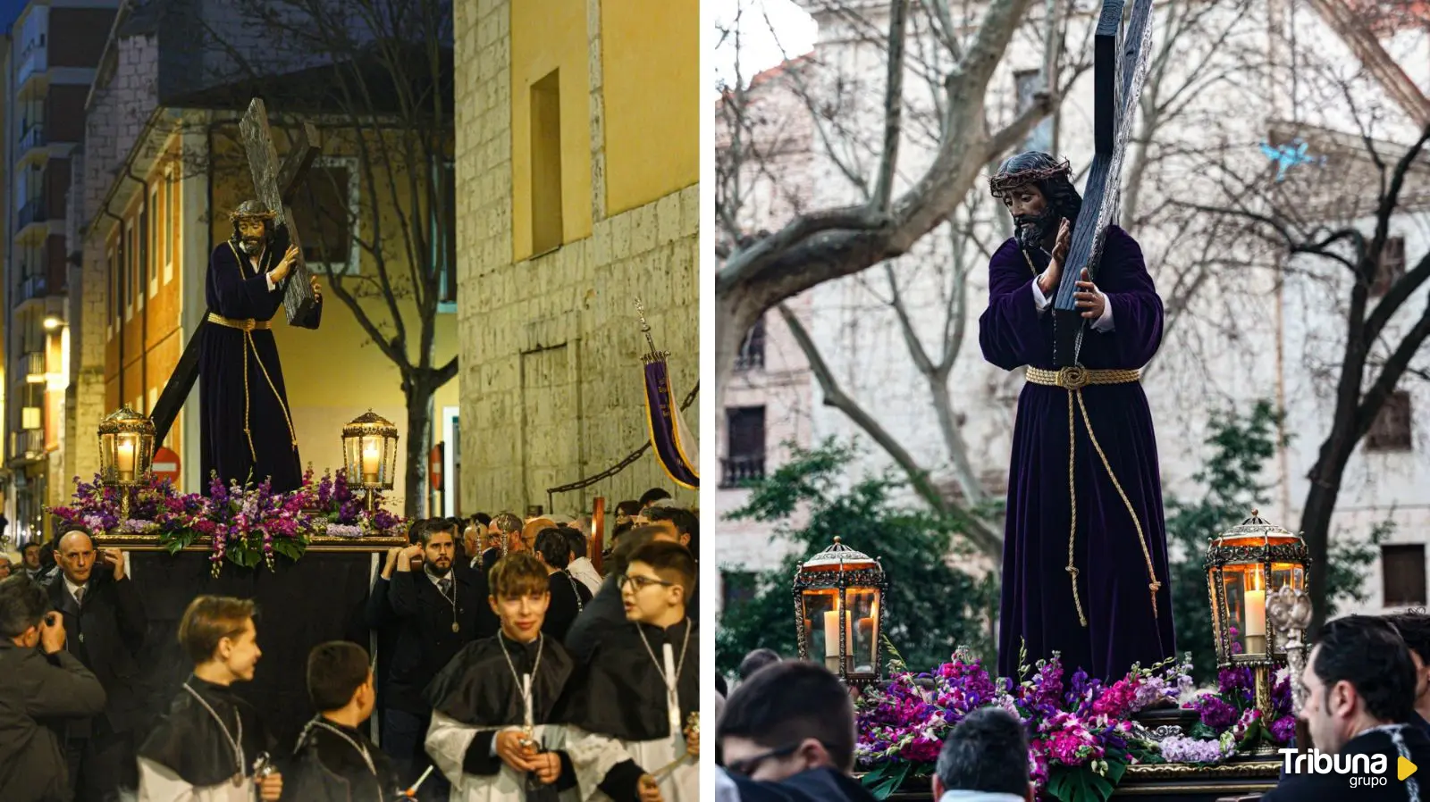 La procesión, que ejerce de antesala de la Semana Santa vallisoletana, volvió a congregar a devotos de distintas cofradías penitenciales que, en un recorrido marcado por el recogimiento, realizaron el rezo de las catorce estaciones del Vía Crucis por el centro urbano. Portada a hombros, la imagen de Jesús con la cruz a cuestas encabezó el itinerario en medio de un respetado y sentido silencio. Según trasladan desde la cofradía a TRIBUNA, los presentes tuvieron un objetivo adicional: orar por los cristianos perseguidos en un gesto de solidaridad espiritual que se realizó en colaboración con el colectivo 'Ayuda a la Iglesia Necesitada'.